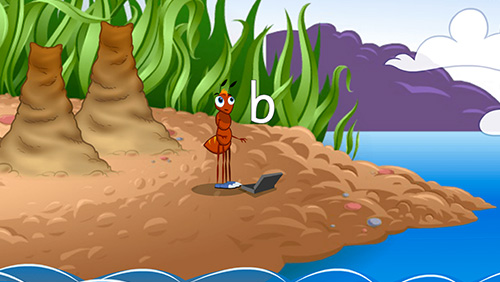 Lesson 6 teaches the letter 'b'. It focuses on identifying the sound 'b' and recognising the letter 'b' in words.